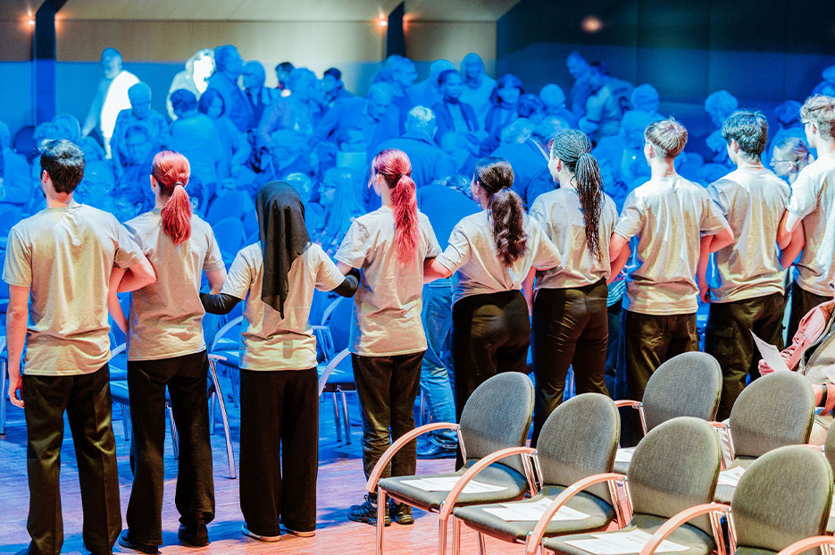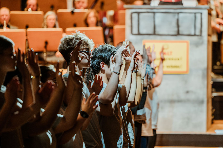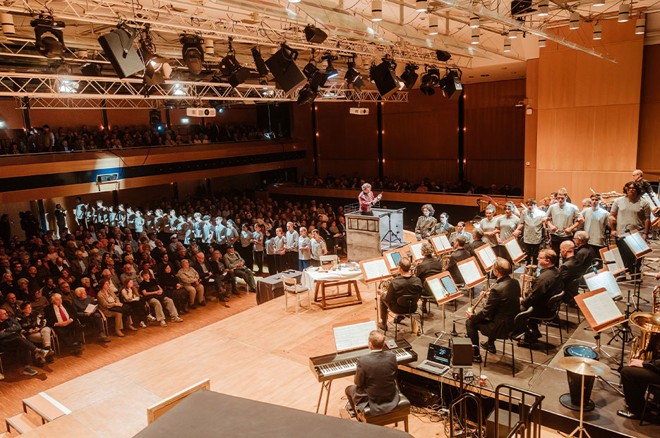 DRÜBEN berührte politisch wie emotional, verband Musik, Theater und gesellschaftliches Nachdenken. In einer Zeit, in der neue Mauern entstehen – sichtbar und unsichtbar – erinnerte das Projekt an die Kraft der Verbindung, der Empathie und der Kunst.