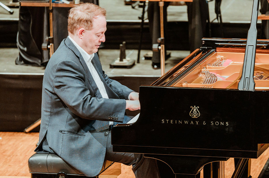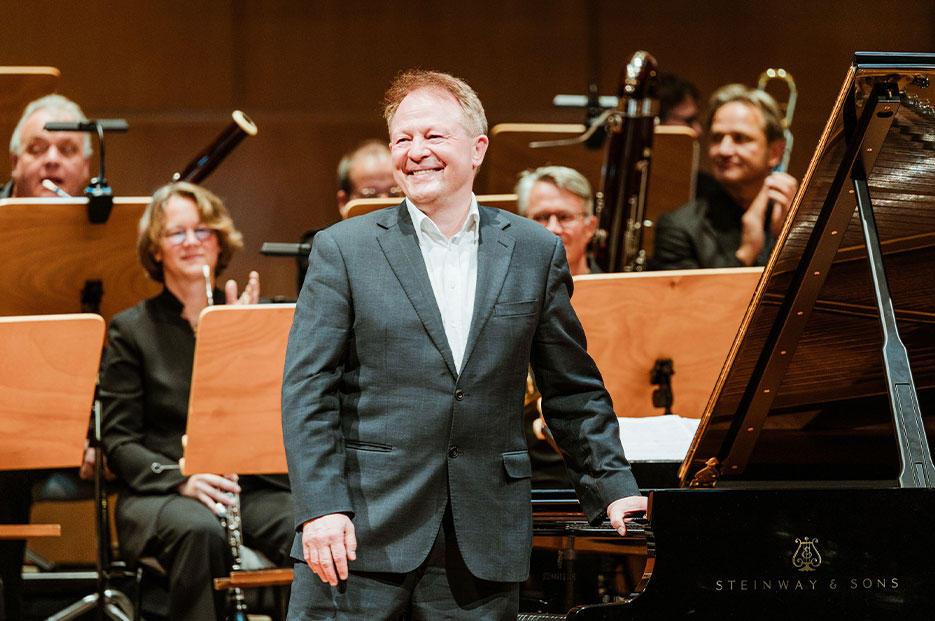 Zum Abschluss erklang Igor Strawinskys Konzert für Klavier und Bläser, entstanden 1923/24 in Paris – ein brillantes Werk zwischen barocker Strenge, modernem Rhythmus und jazziger Virtuosität. Der international gefeierte Pianist Andreas Boyde interpretierte das Konzert als heiteren Kontrapunkt, aber auch als künstlerische Synthese: das kreative Miteinander unterschiedlicher Traditionen, die über nationale und ideologische Grenzen hinweg ihre eigene Sprache finden.